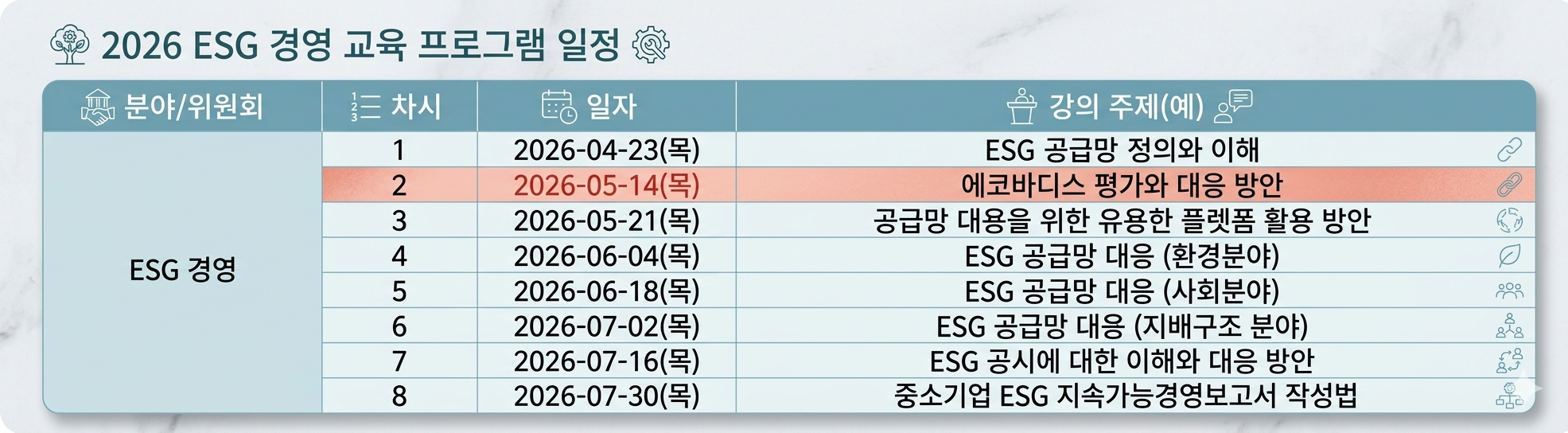 아래와 같이 운영합니다. 최근 글로벌 공급망 내 ESG 요구 수준이 높아짐에 따라 협력사 대상 평가 및 실사 대응은 필수적인 경영 요소로 자리잡고 있습니다.